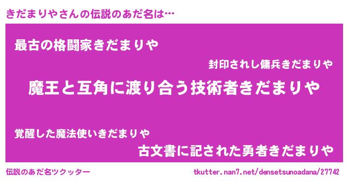 | ヒーロー風カッコイイあだ名 | 『慈愛の使者きだまりや』 |