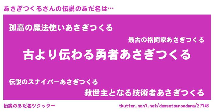 | ヒーロー風カッコイイあだ名 | 『仮面アサダー』『ネオアサギツクル』 |