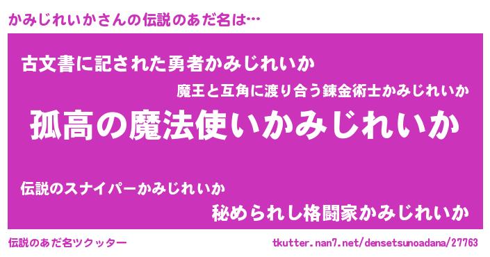 | 意味不明あだ名 | 『住所不定無職かみじれいか(8歳)』 |