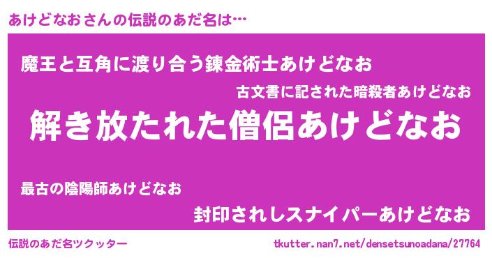 | 意味不明あだ名 | 『とにかく怪しいあけどなお』 |