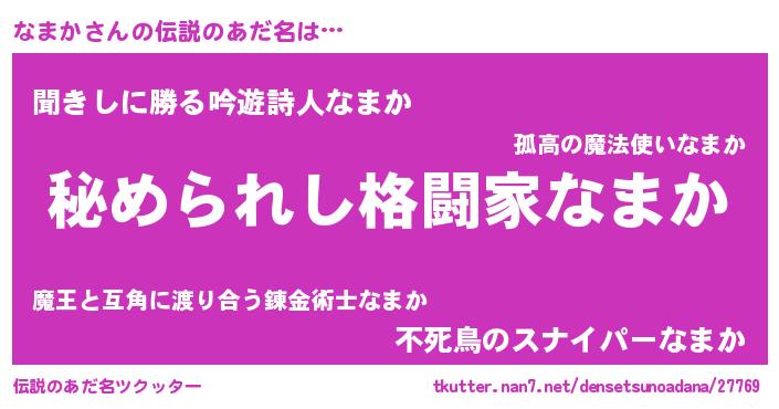 | 意味不明あだ名 | 『なまかフォーエバー』『自称なまか』 |