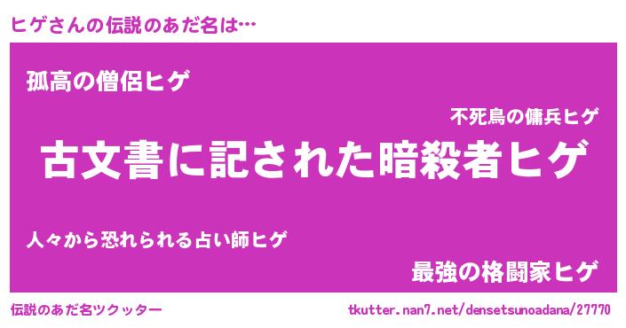 | ピコ太郎風あだ名 | 『ピコヒ郎』『ヒゲ二郎』『ピヒ十郎』 |