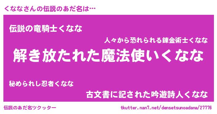 | 意味不明あだ名 | 『とにかく怪しいくなな』 |