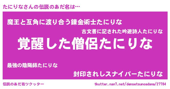 | 男性向けラノベタイトル風あだ名 | 『この素晴らしい世界にたにりなを!』 |