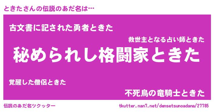 | 男性向けラノベタイトル風あだ名 | 『トキタスレイヤー』 |