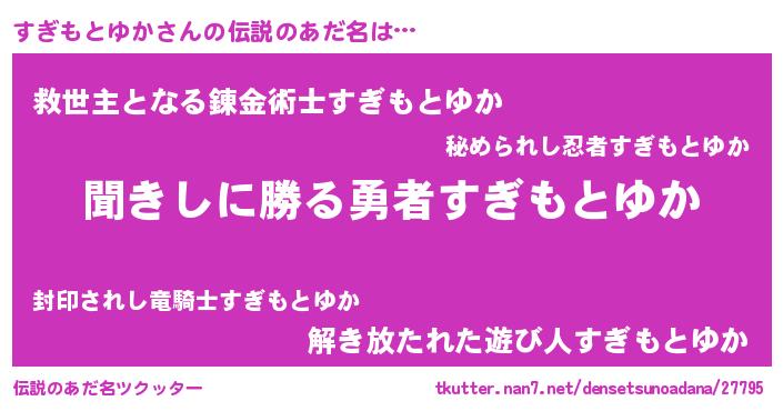 | 男性向けラノベタイトル風あだ名 | 『すぎもとゆかという概念が存在しない退屈な世界 』 |