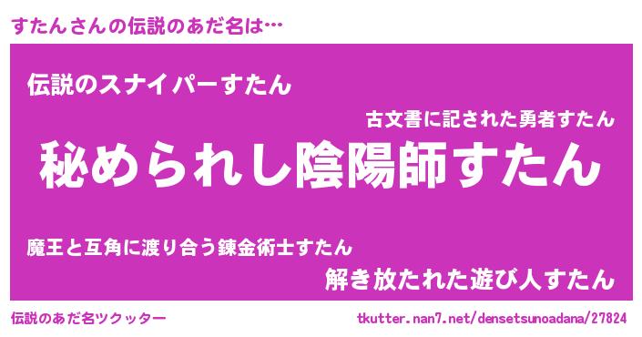 | 男性向けラノベタイトル風あだ名 | 『やはりすたんの青春ラブコメはまちがっている 』 |