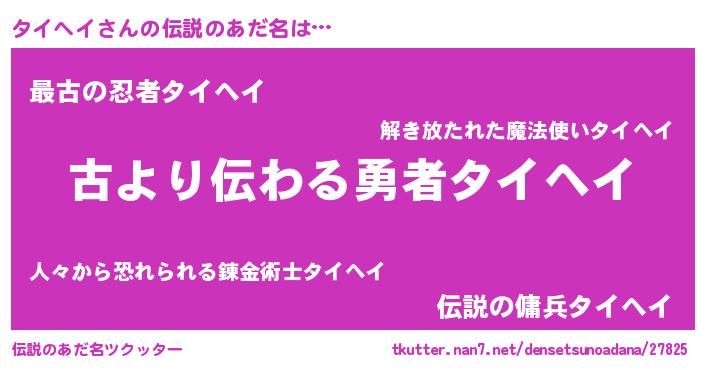 | ヒーロー風カッコイイあだ名 | 『ネオタイヘイ』『サイバー戦士タイヘイ』 |