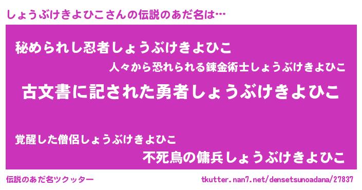 | 意味不明あだ名 | 『自称しょうぶけきよひこ』 |
