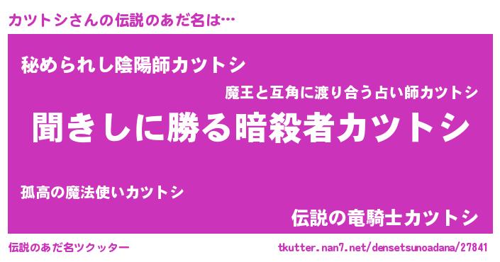 | 女子向けラノベタイトル風あだ名 | 『カツトシなんてお断りですっ。』 |