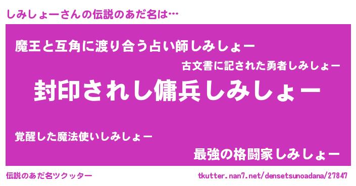 | 胡散臭い通販商品みたいなあだ名 | 『億万長者になれる水晶球…その名も「しみしょー」』 |