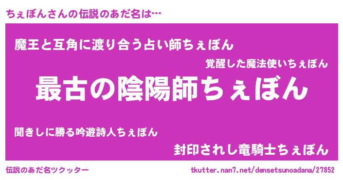 | 意味不明あだ名 | 『ちぇぼんフォーエバー』 |