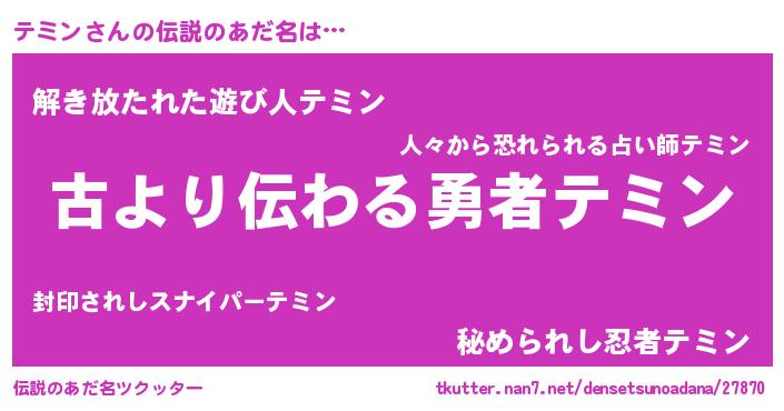 | ヒーロー風カッコイイあだ名 | 『仮面テミダー』『最強戦士テミン』 |