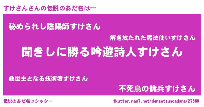 | 男性向けラノベタイトル風あだ名 | 『すけさんという概念が存在しない退屈な世界 』 |