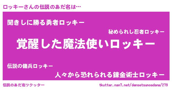 | 男性向けラノベタイトル風あだ名 | 『ロッキーの嫁は女の子じゃないと思った?』 |