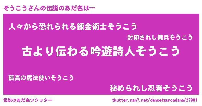 | ポケモン風あだ名 | 『ゼニソウ』『ソウゴンZ』 |