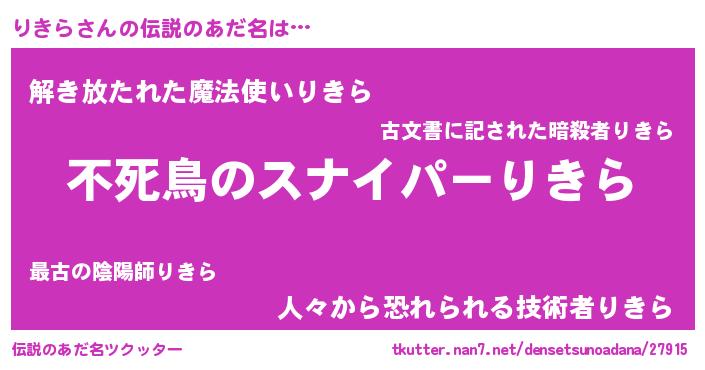 | 男性向けラノベタイトル風あだ名 | 『リキラアートオンライン』 |