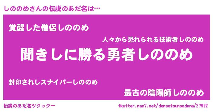 | 意味不明あだ名 | 『永久保存しののめ』『自称しののめ』 |
