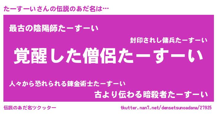 | 女子向けラノベタイトル風あだ名 | 『たーすーい様がみてる』 |