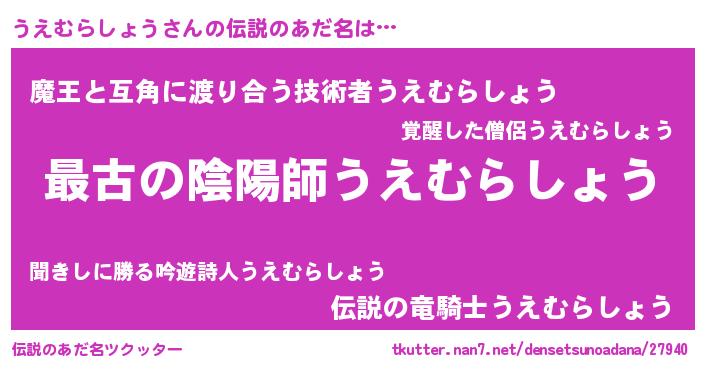 | 女子向けラノベタイトル風あだ名 | 『乙女ゲームの破滅フラグしかない悪役うえむらしょうに転生してしまった…』 |