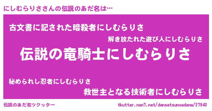 | 料理風あだ名 | 『にしむらりさのカルパッチョ風』 |
