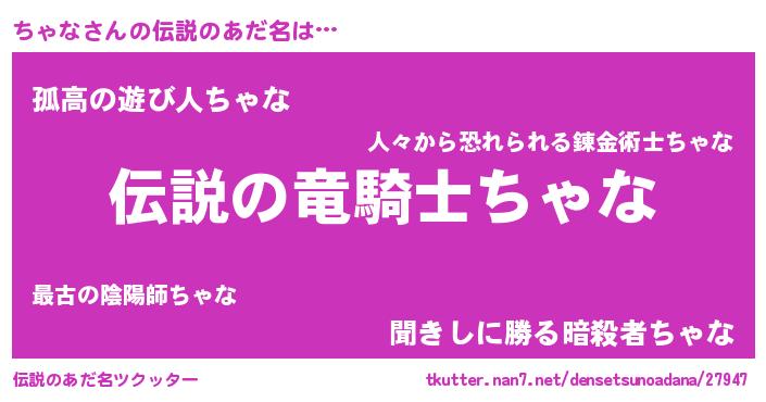 | 胡散臭い通販商品みたいなあだ名 | 『必ず成功するブレスレット…その名も「ちゃな」』 |