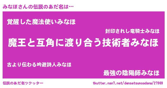 | 女子向けラノベタイトル風あだ名 | 『みなほ恋絵巻』『みなほ様がみてる』 |