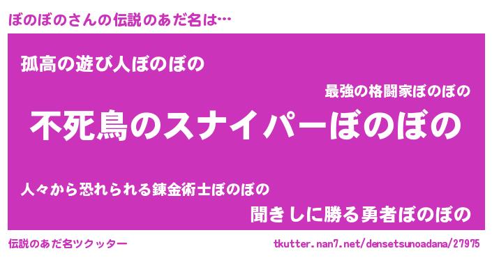 | 胡散臭い通販商品みたいなあだ名 | 『モテモテ間違いなし霊験あらたかなお札…その名も「ぼのぼの」』 |