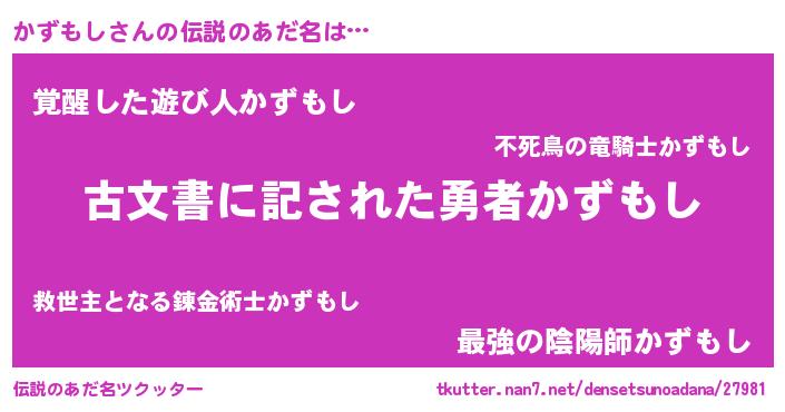 | ヒーロー風カッコイイあだ名 | 『ネオカズモシ』『天弓騎士カズ』 |
