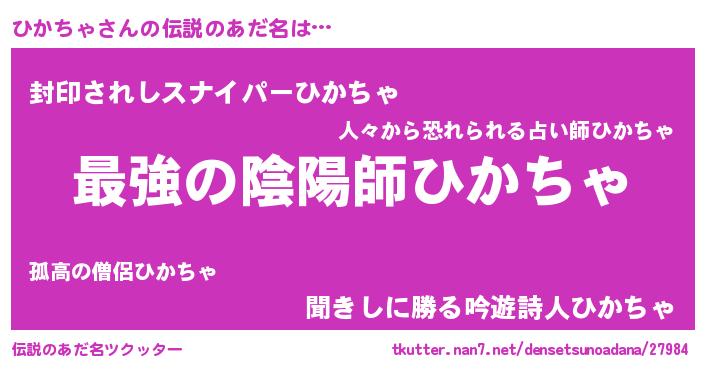 | 男性向けラノベタイトル風あだ名 | 『ひかちゃに滅ぼされるだけの簡単なお仕事です』 |
