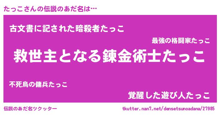 | ヒーロー風カッコイイあだ名 | 『慈愛の使者たっこ』『ネオタッコ』 |