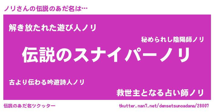 | 胡散臭い通販商品みたいなあだ名 | 『必ず成功する霊験あらたかなお札…その名も「ノリ」』 |