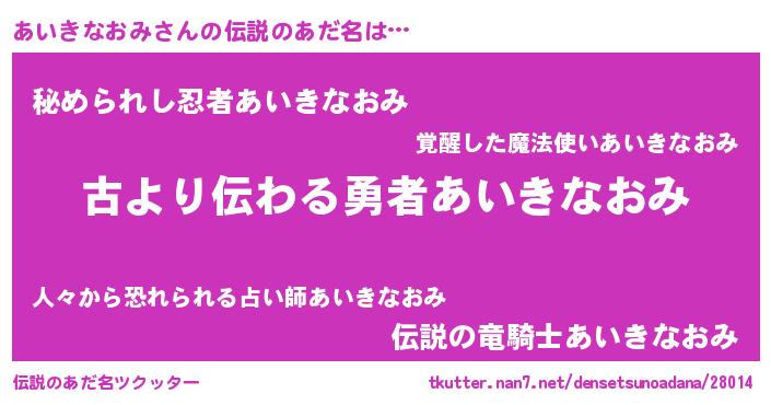 | 男性向けラノベタイトル風あだ名 | 『転生したらあいきなおみだった件』 |