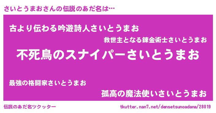 | ヘコむあだ名 | 『さいっふぃ~』『さいとうまお(笑)』 |