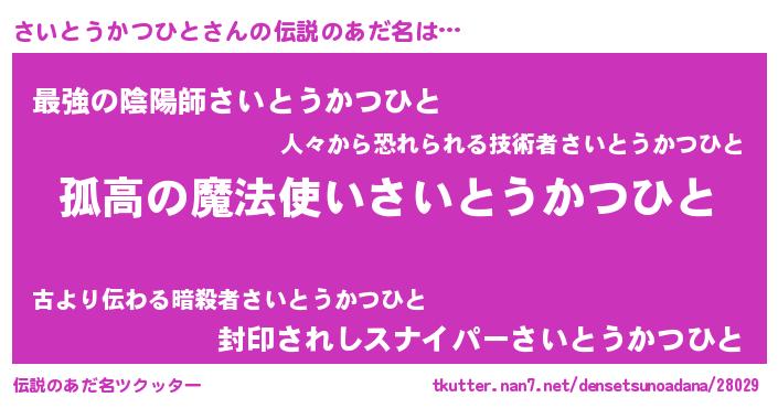 | 意味不明あだ名 | 『住所不定無職さいとうかつひと(3歳)』 |