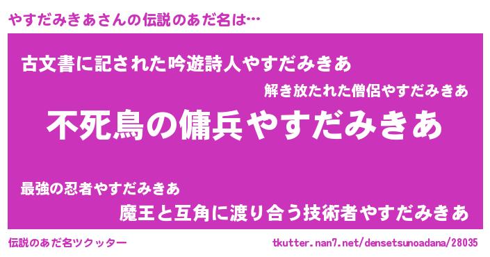 | 意味不明あだ名 | 『自称やすだみきあ』 |