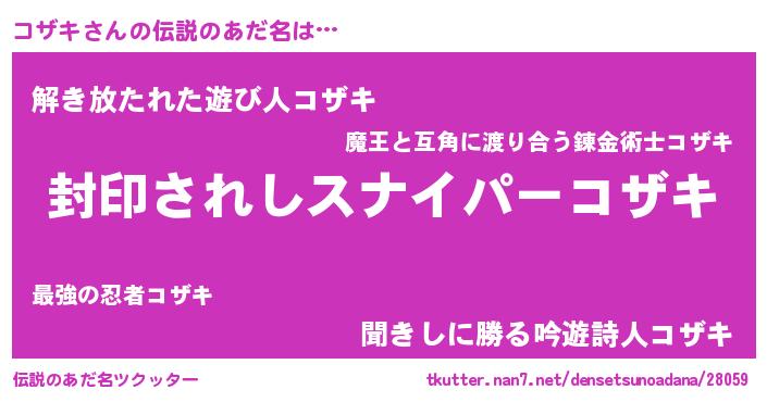 | ヒーロー風カッコイイあだ名 | 『スーパーコザキ』『仮面コザダー』 |