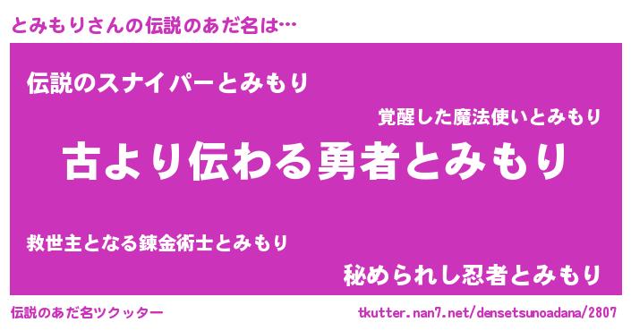 | 意味不明あだ名 | 『自称とみもり』『永久保存とみもり』 |