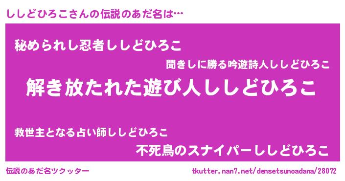 | 女子向けラノベタイトル風あだ名 | 『ししどひろこの卵を拾いまして』 |