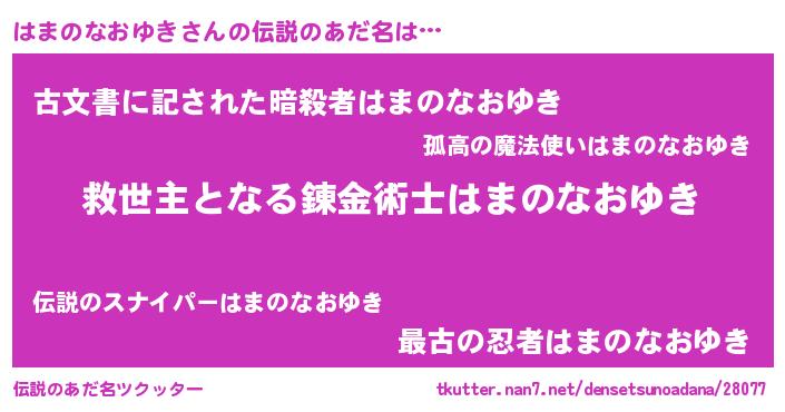 | 男性向けラノベタイトル風あだ名 | 『この素晴らしい世界にはまのなおゆきを!』 |