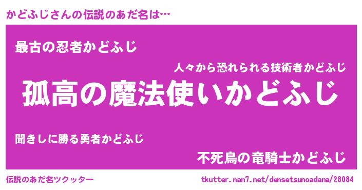 | ヒーロー風カッコイイあだ名 | 『暗黒騎士カド』『ウルトラ戦士カドフジ』 |
