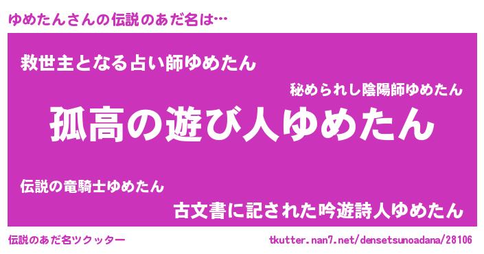 | 男性向けラノベタイトル風あだ名 | 『ダンジョンにゆめたんを求めるのは間違っているだろうか』 |