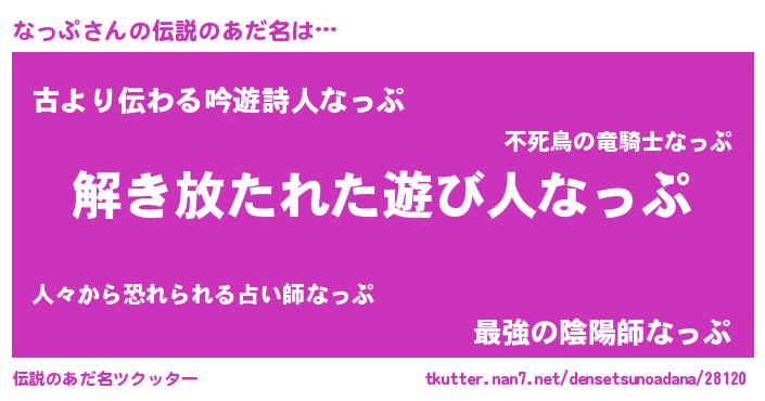 | ヒーロー風カッコイイあだ名 | 『最強戦士ナップ』『銀牙騎士ナッ』 |