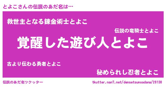| 男性向けラノベタイトル風あだ名 | 『とよこの嫁は女の子じゃないと思った?』 |