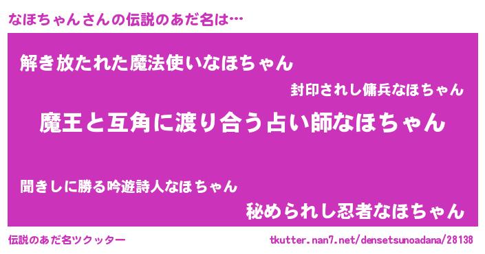 | 男性向けラノベタイトル風あだ名 | 『転生したらなほちゃんだった件』 |
