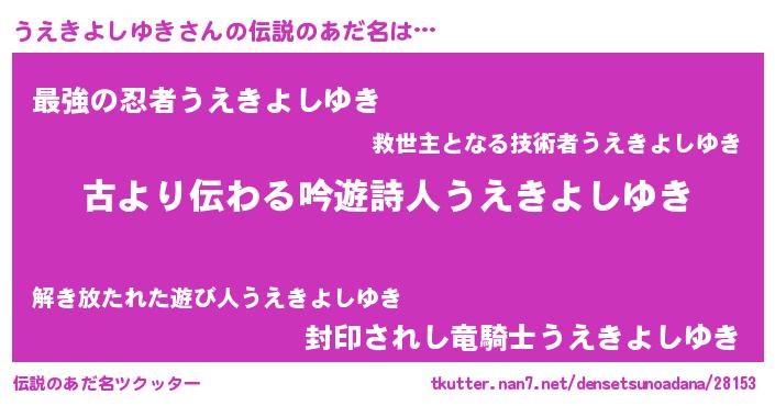 | ヒーロー風カッコイイあだ名 | 『仮面ウエダー』『ネオウエキヨシユキ』 |