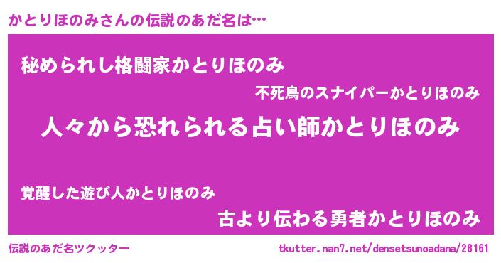 | ヒーロー風カッコイイあだ名 | 『友情の使者かとりほのみ』 |