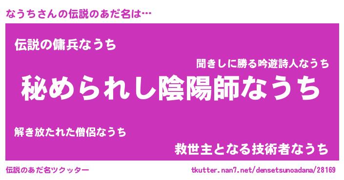 | 男性向けラノベタイトル風あだ名 | 『魔弾の王となうち』『なうちの憂鬱』 |