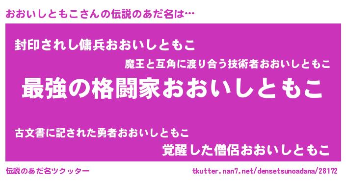 | 男性向けラノベタイトル風あだ名 | 『この素晴らしい世界におおいしともこを!』 |