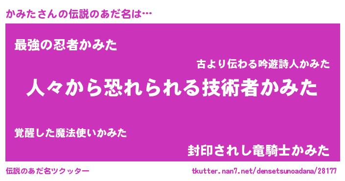 | 女子向けラノベタイトル風あだ名 | 『かみた夫妻のなれそめ』『闇のかみた』 |